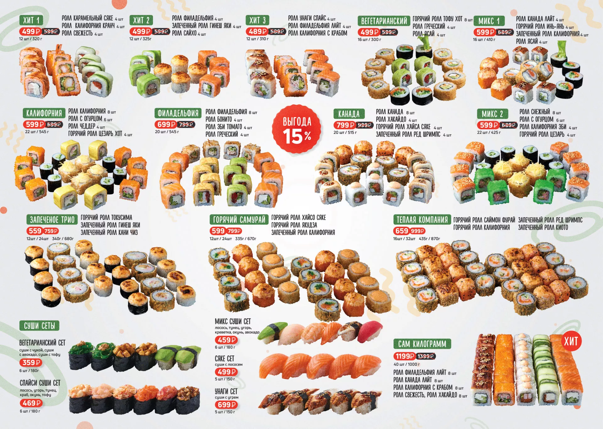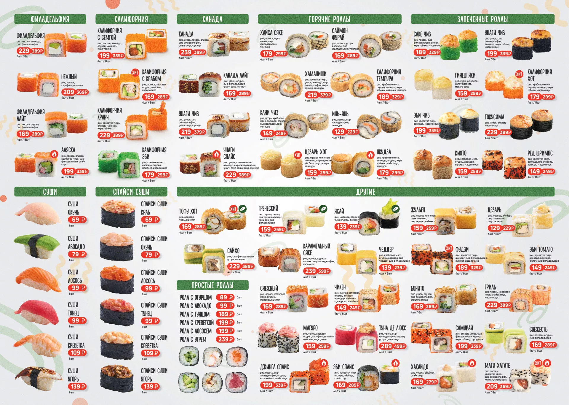 Оформление меню суши-бара «Roll Wok Club» в Белоозёрском