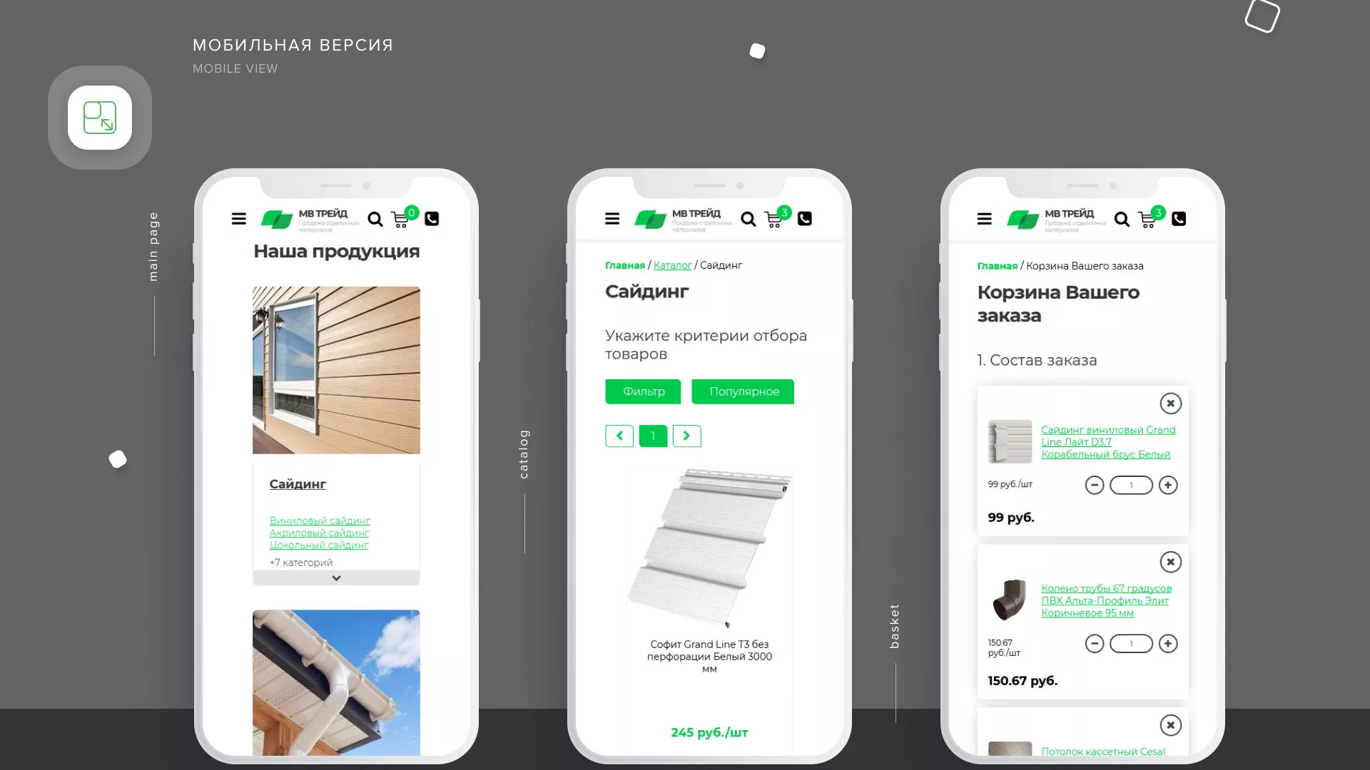 После согласования прототипа мы приступили к прорисовке страниц сайта. Главным трендом сейчас является mobile-first, и адаптация сайта под мобильные устройства влияет на результат поискового продвижения сайтов. Нашей задачей стало — отрисовать не только десктопный дизайн и прототип, но и учесть адаптивность к мобильным и планшетным устройствам. Именно с них сайт получает сейчас более 50% трафика и заказов. В версии для смартфонов и планшетов предусмотрен весь функционал для простого и быстрого поиска, выбора, заказа товаров и оформления покупки онлайн.