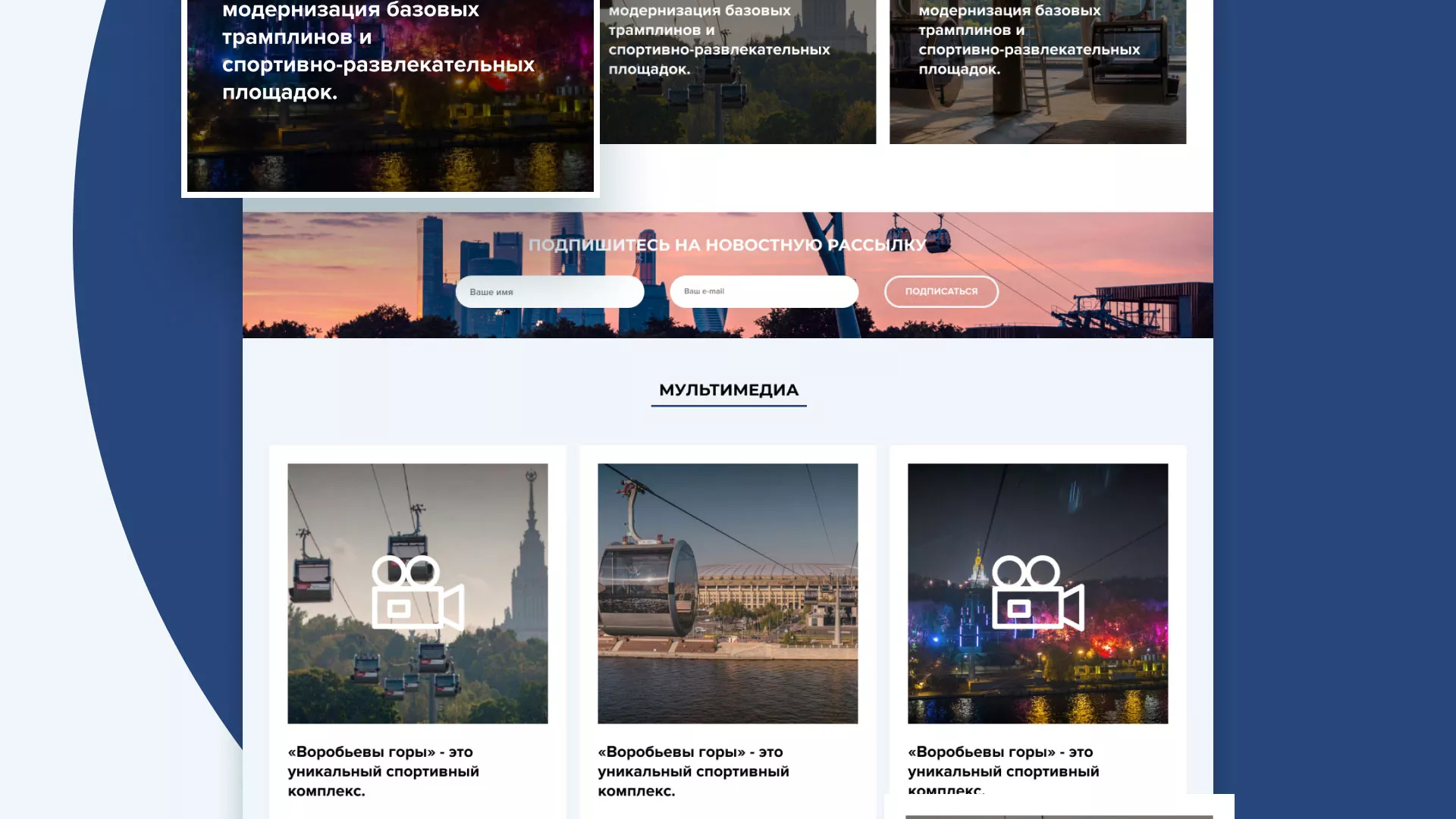 Разработка официального сайта в Белоозёрском для спортивно-развлекательного комплекса «Воробьёвы горы».