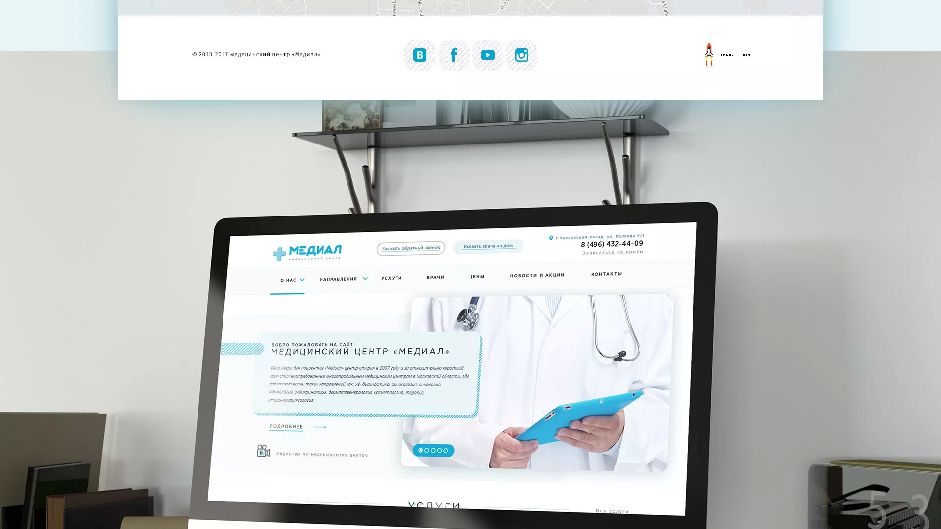 Сайт медцентра «Медиал» в Белоозёрском является «лицом» учреждения, презентует его с лучших сторон, доступно информирует об оказываемых услугах. Он легкий в навигации и использовании. На таком сайте должно быть просто узнать о врачах, услугах, записаться на прием всем возрастным категориям, от 16 до 60 лет. Это должен быть современный, функциональный и эстетически приятный сайт. В рамках создания сайта для медицинского центра компания «Мультзавод» в Белоозёрском ориентируется именно на эту задачу.